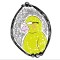 Angelus Mortis: Yellow. The bright half-moon and the helmet wing with a dark half-moon. Then the face, the yellow tear. Then the paper pieces with latin language and the hair.