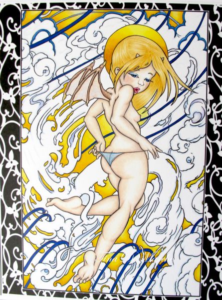 Christopher’s images are beautiful and full of passion. There is a lot of details in his images, but that’s what really lets them stand out . I loved coloring this image and saw it 2 different ways. Knowing that Christopher work has some religion reference in them and the naughty and nice attributes, I colored this image twice. My “Heaven” and “Hell” versions